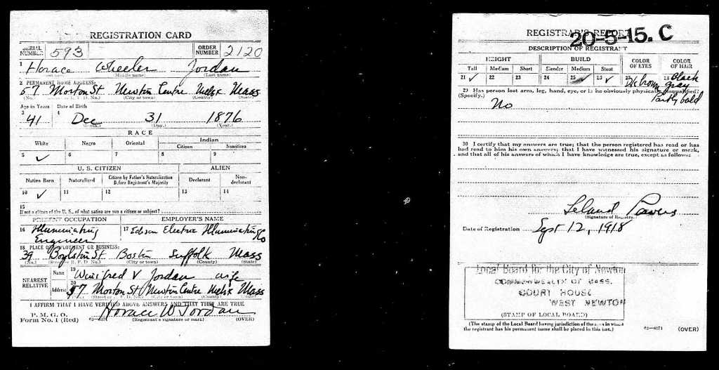 There is a lot to unpack there. Let’s start at the beginning: Horace Wheeler Jordan was, according to census records and his WWI draft card, white: