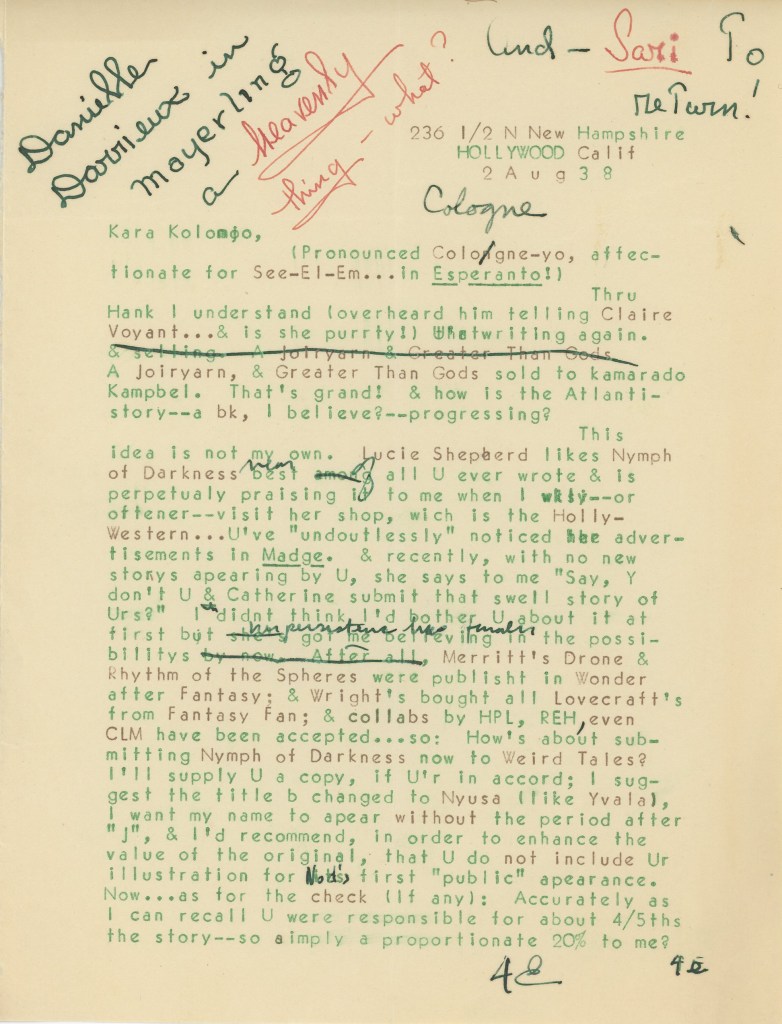 I read your “Dark Land”, and liked it well. —Forrest J Ackermann to C. L. Moore, 12 Feb [1936]