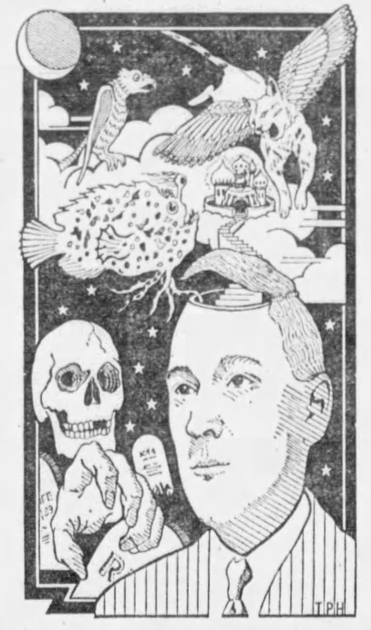 Nor did I mean that I had any mss to present. I meant that I (and numberless readers) believe Lovecraft’s writings to a certain extent, and that excludes those fictional books and university. You see, what I said I could prove was the existence of the “beings” Lovecraft writes about. I’ve had some quite entertaining experiences with them of a personal nature. But before you think me mad, we’ll drop my little dabblings into demonology, as they are personal, and get back to the “proof” I could offer that many readers believe in Lovecraft, and dis-believe in his Necronomicon and Kulten books, and the Miskatonic U. they believe in his demons, because they’ve seen them. I have dozens of sincere letters addressed to my Discussions columns, affirming that these experiences are true, and that they are identical with Lovecraft’s so-called fictional ones. Of course, suggestion is a powerful thing, and Lovecraft’s writings can be said to be powerful. Believing them is a matter of personal choice. I believe that more people believe them sincerely than accept Lovecraft asa great writer. This should interest you, since you are not trying to build up anything but his reputation as a writer.