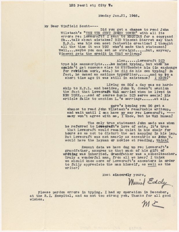 The letter caught the attention of Muriel E. Eddy, a friend and correspondent of Lovecraft’s during his life who later turned her energies to memoirs like “Message in Stone” (1956) and The Gentleman from Angell Street (2001). Her response letter was also published.