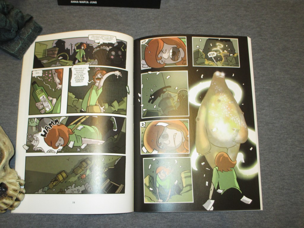 There is no published English translation of Xoth!, and sadly probably never will be, which I feel is a pity because there was a time and place when I think it would have definitely found an appreciative audience. The German-language Extended Edition is still available for sale, and Anna-Maria Jung’s webstore has a lot of cool shirts.