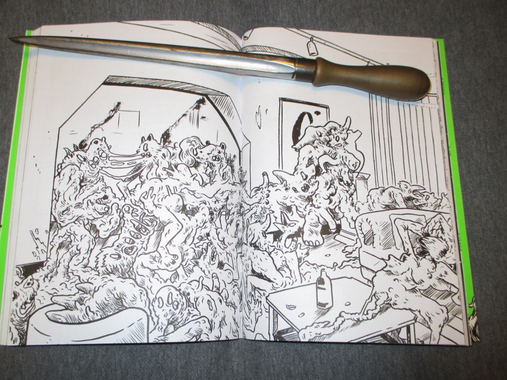 The actual horror in the story is slight. The monsters aren’t very monstrous, the characters aren’t really scared as much as driven by scientific curiosity; blasting away at byakhees like Hunter S. Thompson in bat country is a select aesthetic that doesn’t really encourage the same kind of comforting glow of, say, a mountain that walked or stumbled, or the remnants of an ancient cannibal feast that happens to have the unmistakable physical tell-tales of your own peculiar family. This is not quite on the level of a hypothetical Abbott and Costello Meet Cthulhu, but it’s not far from it.