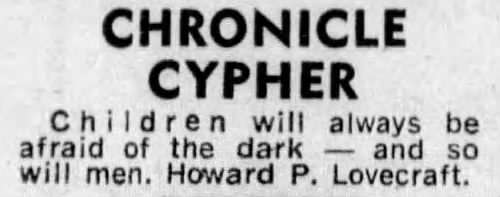 Notes: Ruth M. Eddy’s memoir of Lovecraft was “The Man Who Came at Midnight” (1949), recalling her childhood in the 20s when he came to visit.