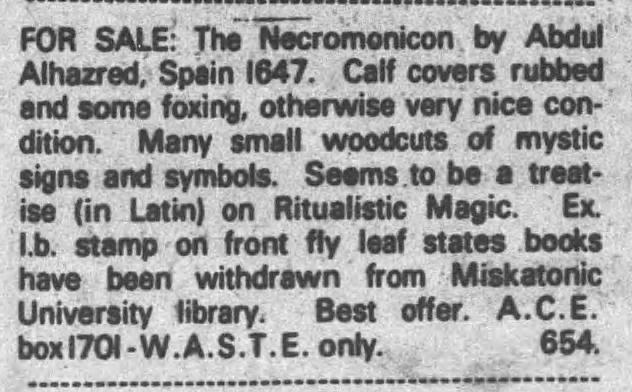 I would be pleased to hear personally from any Lovecraft fans. I have plenty of time and will answer all letters if a stamp is enclosed.