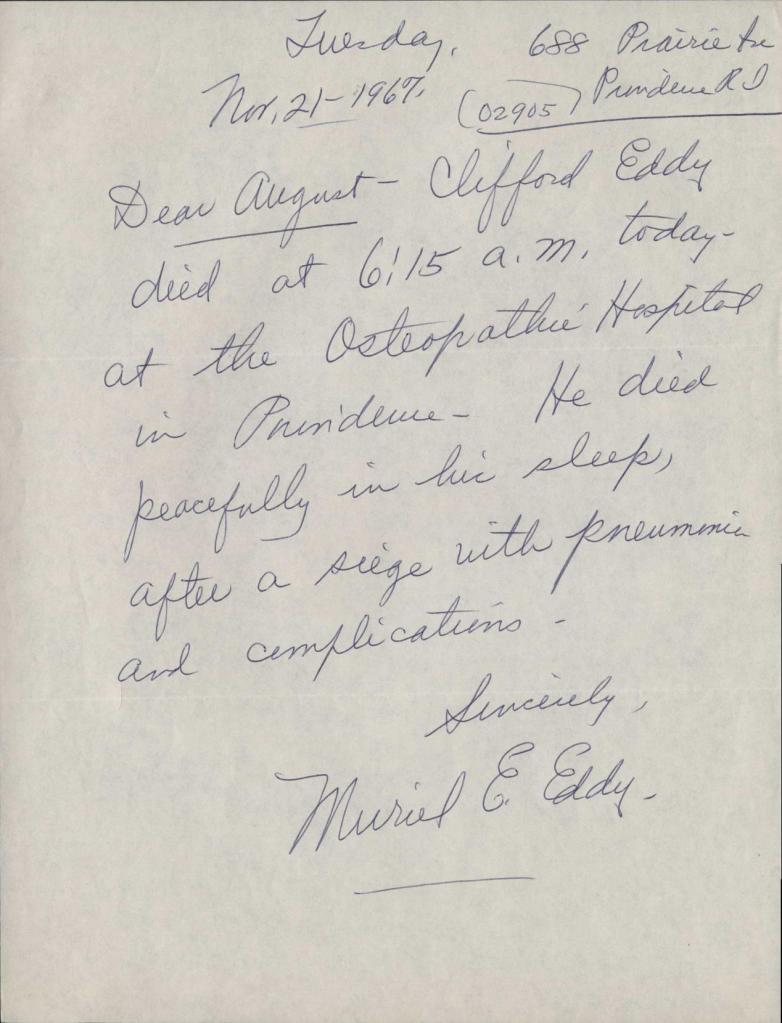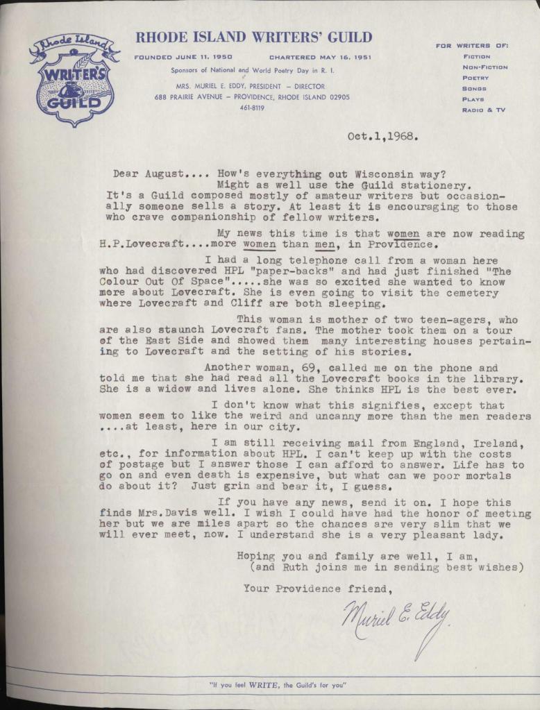 Notes: Muriel E. Eddy also corresponded with August Derleth.