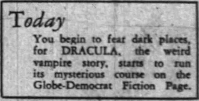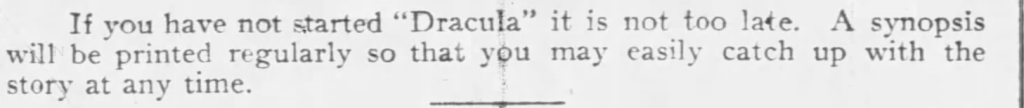There may well be additional newspaper serializations of Dracula besides these; these are just the serials available via newspapers.com as of the time of this writing. Links will be to the full pages, as clips tend to come out illegible.