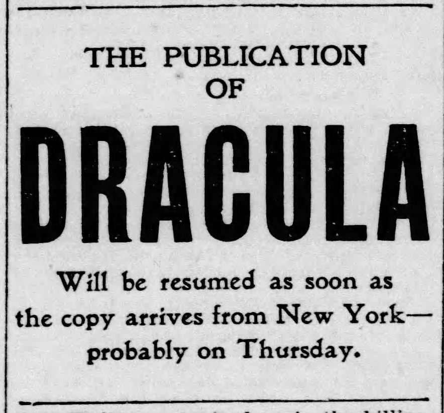 One amusing incident was an announcement to readers that ran in place of Dracula on 4 and 5 July: