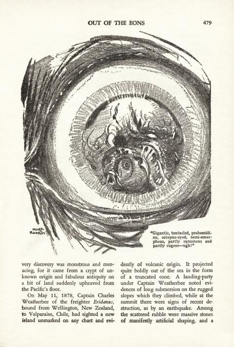 I was interested in Paul Cook’s account of Lovecraft’s Boston visit, and how he made him rest up before coming over to my house. He certainly did not act tired, and ate very well, although Cook said he gave him a good meal before he came. I wonder if he thought that he would be starved at my house? He seemed to enjoy himself a lot. Soon after that he came again, and we visited all of the museums together. That was where I conceived the idea for OUT OF THE EONS.