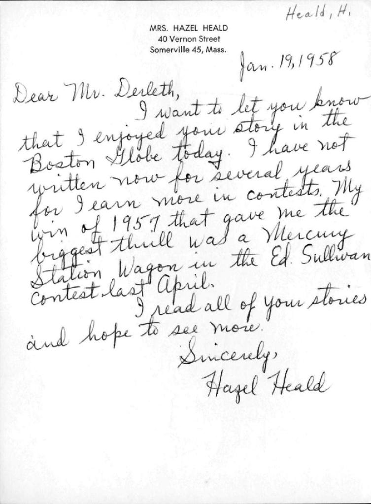 The final letter from Hazel Heald in the file is dated 19 Jan 1958, only a few years before her death.